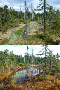 Erfolge bei der Renaturierung zeigt dieses Vorher-Nachher-Bild vom Tieffilz im Lusengebiet. (Fotos: Claudia Schmidt/Nationalpark Bayerischer Wald)