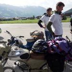 Um 8 Uhr morgens, bei einem Mix aus Wolken und a paar vereinzelten Sonnenstrahlen ging es dann endlich los. Im Vorhinein hat`s uns, bzw. den bis zu 60 Jahre alten Mopeds, kaum einer im Familien-/und Freundeskreis zugetraut, dass mia überhaupt bis nach Österreich, geschweige denn bis zum Gardasee kemman. Demnach war unsa Aufregung an dem Morgen beim Start der Motoren natürlich a ziemlich groß. Trotzdem ham mia uns voller Vorfreude und Hoffnung Richtung Grenze bei Sachrang aufgmacht, die ma dann auch nach oana knappen Stund hinter uns glassn ham. Unser erstes Zwischenziel war erricht. Gegen 10 Uhr hats dann die erste Brotzeit in Form von einer Leberkassemmel kurz hinter Kufstein gem. Frisch gestärkt gings dann, mit einem kurzen halt bei da Tankstelle weida Richtung Innsbruck.