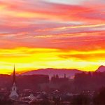 Heute um kurz vor Sieben konnte Axel Löffler folgende Fotos über Prien am Chiemsee aufnehmen, die den herbstlichen Sonnenaufgang zeigen: