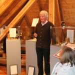 • Apotheker Dr. Günter Fleischmann erklärt die Vitrinen der Ausstellung „Antimonbutter und Fingerwurm“ in den Ausstellungsräumen im dritten Stock der Alten Schule