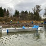 Drei Kilometer lang ist die Strecke, die die acht Männer an diesen beiden Tagen abgehen, von der Mündung des Rothgraben bis nach Unterhochstätt. Zusätzlich zu den Flaschen stöbern sie Plastik in allen Größen auf. Auch Autoreifen, Fahrräder und anderen Schrott haben sie schon gefunden und eingesammelt. Vieles haben nicht unbedingt Menschen direkt am oder auf dem Chiemsee weggeworfen. Ein großer Teil Müll fließt mit dem Wasser der Tiroler Achen in den See. Jeder Autoreifen, jedes Stück Plastik, jeder gefüllte Müllsack wird zurückgebracht zum Boot, das während der beiden Tage pendelt zwischen der Bucht und der Anlegestelle in Unterhochstätt. An Land sortieren die Arbeiter alle Flaschen aus und werfen den übrigen Unrat in einen großen Container, der schließlich zu einem fachgerechten Entsorger gebracht wird.