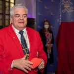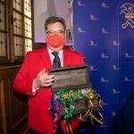 Präsidient Grauer präsentierte im Rahmen einer Pressekonferenz den „Prunkorden am Band 2022“ und das aktuelle Narrhalla Magazin und freute sich, Stadträtin und langjähriges Narrhalla Mitglied Frau Ulrike Grimm, die den diesjährigen Orden entworfen hat, persönlich zu begrüßen.