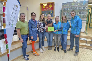 In der Grundschule Ramsau präsentierte das Nationalparkteam das neue Buch kürzlich bei einer Lesung vor drei Grundschulklassen. Im Anschluss überreichten die Nationalparkmitarbeitenden Lukas Singer, Lina Wierecky und Martina Wörgötter (v.r.) das Buch an Andreas Mandl (stv. Leiter), Alexandra Busch (Leiterin), Franziska Eitzenberger und Anna Angerer-Pfnür (Lehrerin) von der Grundschule Ramsau. Das neue Kinderbuch ist ab sofort im Nationalparkzentrum „Haus der Berge“, in der Infostelle „Klausbachhaus“ sowie auf der Nationalpark-Webseite erhältlich.