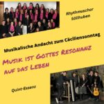 „Musik ist Gottes Resonanz auf das Leben.“ – unter dieser Überschrift gestalten der Rhythmuschor Söllhuben und die Instrumentalcombo Quint-Essenz miteinander eine musikalische Andacht am Samstagabend um 19 Uhr in der Pfarrkirche Söllhuben zum Cäciliensonntag.