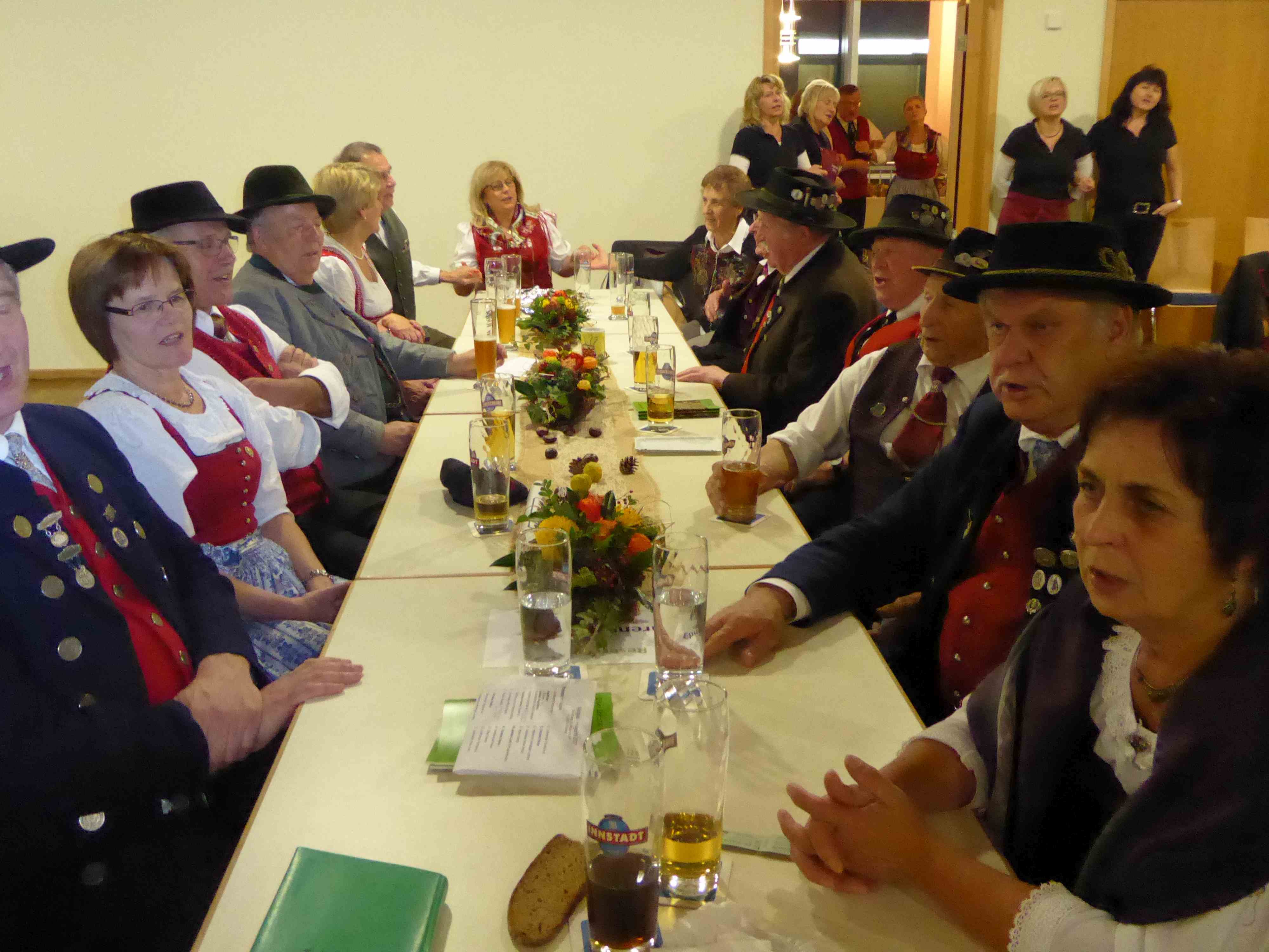 Auch am Tisch der Ehrengäste wurde bei „Mia san vom Woid dahoam“ geschunkelt (in Bildmitte stv. Landrätin Helga Weinberger).