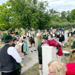 der designierte Neu-Dirigent Lothar Beyschlag vertrat Noch-Dirigent Thomas Lindlacher am Dirigentenpult der Blaskapelle – neben Ehrendirigent Christian Dengler, der an der Orgel gekonnt den Kirchenchor führte. Witterungsbedingt spielte sich das Hochfest, ohne große Prozession, im Kirchenraum ab. Somit blieb Lothar (noch) vor seinem ersten Marscheinsatz verschont.