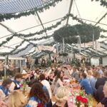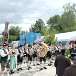 Apropos Premieren: für viele Überseer Musikanten ist der Fronleichnamstag auch der erste Ausrückungstermin. Denn die kleine Besetzung (10-Mann) der Blaskapelle reist schon traditionell zur Eröffnung des Altbairischen Rosenauer Volksfest nach Mamming. Beim „Leitern Ernst“ marschierte nicht nur der Aushilfstaferlbua Anton mit, sondern musikalisch war es auch für Vitus und Simone der erste Auftritt beim Leitern Ernst. Auch war es das erste Mal, dass die Kapelle um Martin Falkinger mit dem Mozart-Express vom RVO nach Niederbayern fuhr. Busfahrer Andi, ein Chiemgauer Musikantenkollege, legte kurzentschlossen selbst Hand ans Flügelhorn und unterstützte unser hohes Blech, anstatt untätig auf die späte Rückreise zu warten.