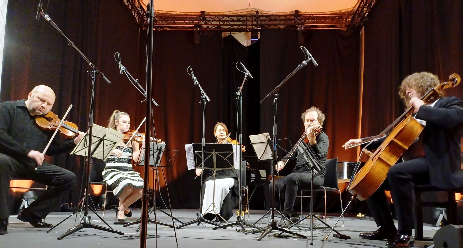 Beim Eröffnungskonzert des 22. Chiemgauer Musikfrühlings im Kulturforum Klosterkirche spielten beim Streichquintett von Felix Mendelssohn-Bartholdy (von links) Boris Brovtsyn, Alexandra Conunova, Natasha Tchich, Razvan Popovici und Justus Grimm.