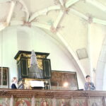 Bericht und Bilder: Christiane Giesen – Die beiden Mitwirkenden der „Harmonice Mundi“ Daniela Niedhammer und Viktor Töpelmann auf der Empore des Ettendorfers Kircherls St. Anna und Vitus -oder: vor dem Altar