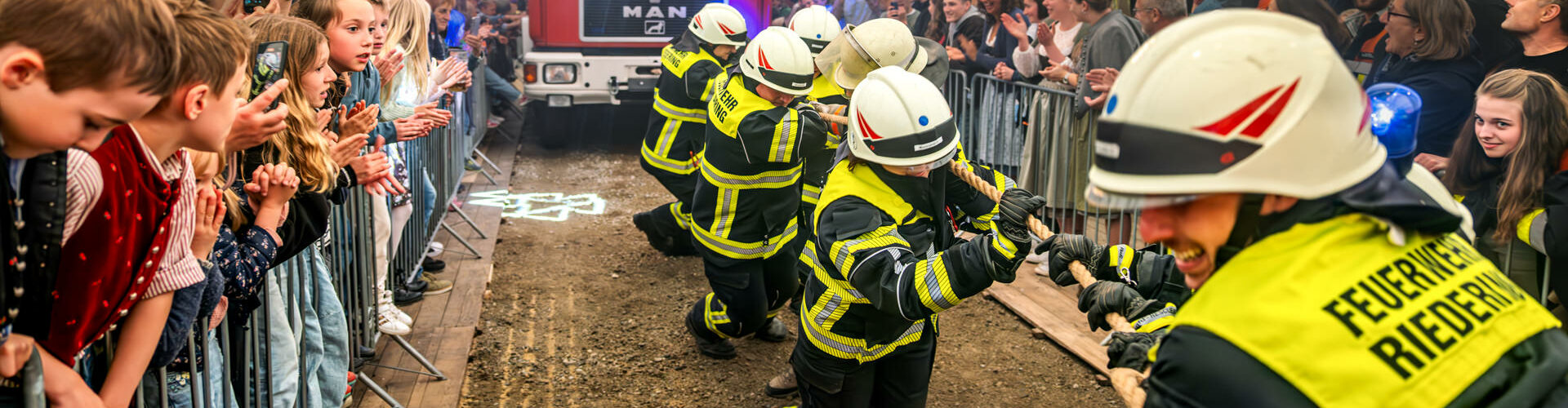 Riedering – Beim Fire-Truck-Pulling anlässlich des 150-jährigen Jubiläums der Freiwilligen Feuerwehr Riedering verwandelte sich das große Festzelt in eine brodelnde Arena. 27 Feuerwehrmannschaften aus ganz Deutschland und dem benachbarten Österreich – darunter sogar ein Team der Freiwilligen Feuerwehr Frankfurt – traten mit purer Muskelkraft gegeneinander an. Ziel war es, ein rund 9,5 Tonnen schweres Feuerwehrauto auf einer 25 Meter langen Strecke so schnell wie möglich ins Ziel zu ziehen.