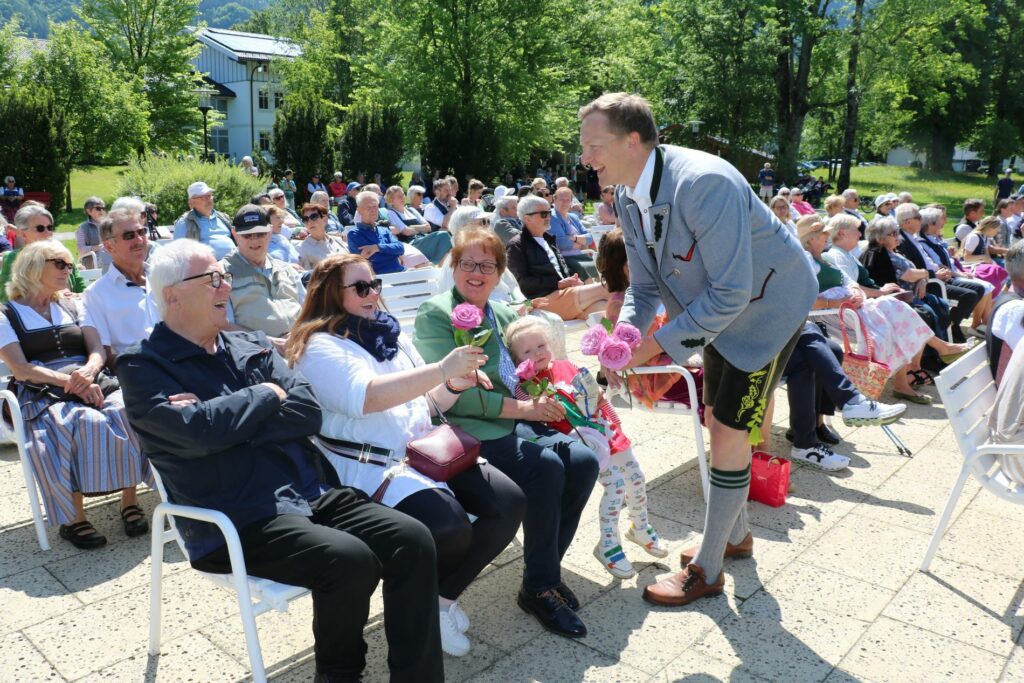 Bürgermeister Simon Frank und die dritte Bürgermeisterin Monika Schmid verteilten dort am Muttertag wunderschöne Blumen für alle Frauen und Mütter beim großen Frühjahrskonzert mit der jungen Musikkapelle Aschau. Die jungen Musikanten brachten den Zuhörern ein Frühschoppenkonzert vom Feinsten. Speziell für Jugendorchester verfasste Stücke wechselten sich mit schwierigen Konzertstücken ab, dabei wechselten die Burschen und Mädchen ständig die Stilrichtungen, aber ganz egal wie hoch auch die Anforderungen waren, die Aschauer Jugendkapelle, verstärkt durch die Schüler aus dem Klassenmusizieren, meisterte alles. Zwischendurch gingen die beiden Bürgermeister mit einem großen Rosenstrauß durch die Reihen und verteilten die Blumengrüsse. So erhielten alle Frauen und Mütter eine Rose und freuen sich über den Frühlingsboten im Mai. Bereits vor dem Konzert besuchten beide Bürgermeister das Seniorenheim Priental und brachten auch dorthin ihre Blumengrüße.