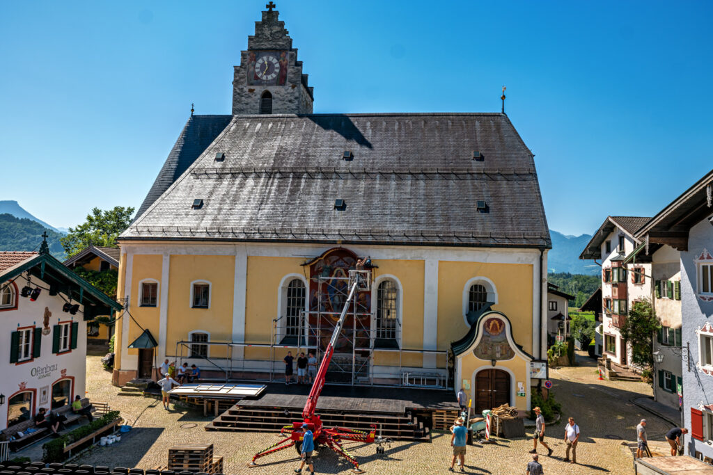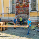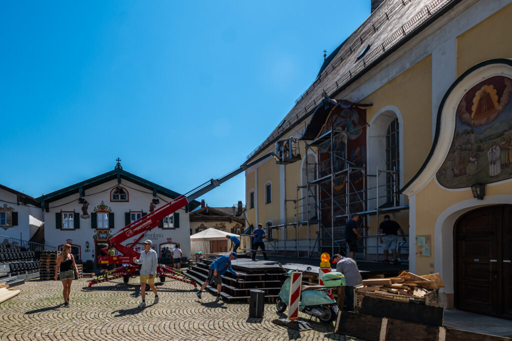 Kaum ist der letzte Applaus verklungen, beginnt ein ganz anderes Schauspiel – leiser, aber nicht minder bedeutend: der Abbau. In den frühen Morgenstunden danach liegt der Neubeurer Marktplatz ruhig da, als hätte er selbst noch Mühe, den Zauber der vergangenen Abende loszulassen. Nur wenige Stunden zuvor war hier noch das Herzstück des „Jedermann“-Spektakels – heute dominiert wieder das Praktische: Leitern, Schraubenschlüssel, schweißnasse T-Shirts und routinierte Handgriffe.