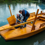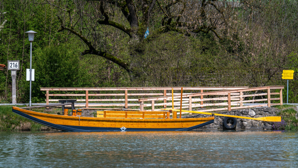 Die nach alter Handwerkskunst hergestellte, aus Lärchenholz angefertigte 11 m lange und 2,80 m breite Fähre bietet 12 Fahrgästen und zusätzlich Fahrrädern Platz.