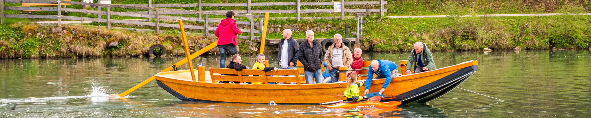 Die nach alter Handwerkskunst hergestellte, aus Lärchenholz angefertigte 11 m lange und 2,80 m breite Fähre bietet 12 Fahrgästen und zusätzlich Fahrrädern Platz.