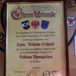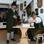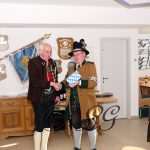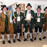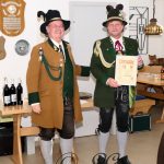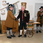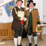 Sichtlich und freudig überrascht war Hauptmann Wilhelm Schmidt von der GSK Raubling, als ihm vom Hauptmann der Breitenbacher Schützen Josef Gruber das Goldene Ehrenzeichen samt Urkunde für seine kameradschaftlichen Beziehungen zu den Breitenbacher Schützen ans Revers gesteckt wurde.