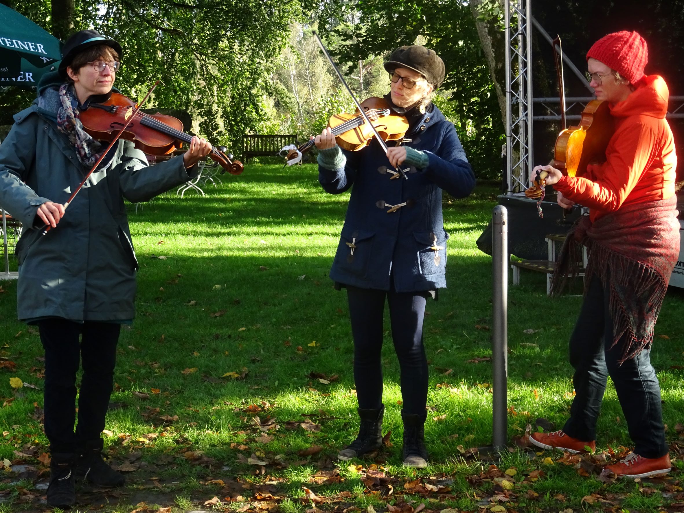 Trotz Kälte und Schauer verbreiteten die „violins in fusion“ gute Laune, indem sie sich von Stand zu Stand „musizieren“