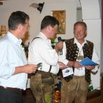Die Lehrzeit als Metzger im Frankenland, der Heimat seiner Mutter, prägte Fritz Vornberger. Beim Fellner in Raubling übernahm er Verantwortung im Schlachthaus, entwickelte sich in Vorbereitung auf die anstehenden Aufgaben zu Hause. „Da Fritz“ übernahm immer mehr Verantwortung, war dann nach dem frühen Tod des Vaters der Wirt von Altenbeuern. Die ersten Kontakte zum Wirt wird mancher Mitbürger gehabt haben wenn man sich rund um das Haus traf, zum gemeinsamen Aufzug zum Waldfest ins Bürgl oder wenn es nach der Fronleichnamsprozession mit dem Opa oder Vater zu „de Antlaßwürst“ ging. Der Wirt war Zentrum für den Trachtenverein „Immergrün“ Altenbeuern – Vereinssitzungen, Plattler- und Theaterproben, Faschingsbälle, Jahrtagfeiern, Ehrungen. Der Saal beim Wirt begleitete auch die Entwicklung des Trachtenvereins. Und mit immer dabei der „Fritz“, der „Wirtei“ – auch nach seiner Hochzeit mit seiner Bärbl. Ungezählte Hochzeitsfeiern, kein Verein im Dorf , der den Saal beim „Wirtei“ nicht schon genutzt hätte. Gesellige Treffen aller Altersgruppen konnten in den verschiedenen Räumen stattfinden. Mit der Anpachtung der Gastronomie am Neubeurer See konnten Fritz und Bärbel Vornberger zusammen mit Sohn Christoph auch die Bewirtung außerhalb des Hauses erfolgreich gestalten. Sie taten dies sehr erfolgreich bei einer Vielzahl von Veranstaltungen und Festzelten im Ort und in den Nachbargemeinden. Dies immer in der Gewissheit, auf ein zuverlässiges Team vertrauen zu können. „De Boana-Maria“, Maria Oberauer, war dort und im häuslichen Betrieb die zuverlässige Stütze. Dies nicht nur als Arbeitskraft, sondern als Bezugsperson, darüber hinaus, eingebunden in den familiären Ablauf. Umtriebigkeit bestimmten das Leben vom „Wirtei“, wie Fritz Vornberger eigentlich nur genannt wird. Dies waren auch die begleitenden Worte von Bürgermeister Schmidl, gerichtet an die Braut Bärbel bei der Hochzeit. “Der is oaner für`s Dorf”, meinte Schmidl. Die Bedürfnisse des Betriebes galt es zu vereinbaren mit der Familie, mit Sohn Christoph und Tochter Stephanie sowie Mutter Katharina, die lange Jahre noch mitgestaltende Kraft war. Musikspiel, Chorgesang beim Guttei, Fußball, früher auch noch Sportkegeln, Skifahrn und wenn man ihn brauchte auch beim Theaterspiel, auf den Fritz war Verlass.