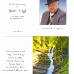 Auf dem Friedhof der ehemaligen Pfarrkirche St. Martin in Högling bezeichnete nach einem festlichen, aber klein gehaltenen Trauermarsch Erster Bürgermeister Richard Richter Bertl Heigl als Vorzeiger-Heufelder und Vorzeige-Brückmühler, der von April 1972 bis März 1991 Wassermeister der Gemeinde war. „Langwirkende Spuren sind hinterlassen, seine Lebensleistung fand 2004 mit der Ehrung mit dem Ehrenbrief der Gemeinde und hernach mit einer weiteren Ehrung durch die Regierung von Oberbayern besondere Anerkennungen“ – so der Bürgermeister. Und für die große Zunft der bayerischen Hochzeitslader, die mit 36 Mitgliedern vertreten waren, sprach Sepp Heinzl aus Tuntenhausen einen Nachruf, dazu unter anderem: „Der Bertl hatte über vier Jahrzehnte an die eintausend Hochzeiten, seine Verserlkünste und sein Gstanzlsingen und sein Einsatz seit der Gründung unserer Gemeinschaft bleiben unvergessen“. Gemeinsam erinnerten die Vorstände Alois Huber und Markus Zehetmaier für den Trachtenverein „D´Mangfalltaler“ Heufeld und für den Bayerischen Inngau-Trachtenverband einen Nachruf, sie sagten: „Der Bertl war von 1946 bis heute, als 76 Jahre aktives und vorbildliches Mitglied, er was Vorplattler, Fähnrich, von 1978 bis 1993 Erster Vorstand und bis zuletzt hilfreicher Ehrenvorstand. Er war ein richtiger `Möglichmacher` bei großen und kleinen Festen“.