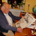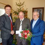 Fotos: Hötzelsperger – Prof. Günter Loos mit der Ausgabe der Chiemgau-Zeitung an Silvester 2017, dem Tag seines 80. Geburtstags / Erinnerungen an die Gratulation durch die Gemeinde Prien mit ihren Bürgermeistern Jürgen Seifert und Hans-Jürgen Schuster sowie vom Diakonieverein durch Wolfgang Schuster, der vor kurzem ebenfalls verstarb.