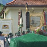 Vor wenigen Wochen zeigte der Verstorbene noch seine tiefe Verbundenheit zu uns Trachtlern, in dem er ein Fahnenband für die neu geweihte Standarte stiftete, das seine Frau in Vertretung von ihm an die Standarte heftete.