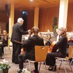 Bericht und Fotos: Christiane Giesen – Das Musikkollegium Traunstein unter der Leitung von Augustin Spiel, hier mit der Solistin auf der Bratsche, Viktoria Stegemann, in der Aula der Berufsschule.