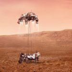 Am 18. Februar 2021 wird die NASA die präziseste Landung auf dem Roten Planeten einleiten, die es je gegeben hat. Eine Raumsonde mit dem Rover Perseverance (Beharrlichkeit) im Gepäck wird etwa um 21:38 Uhr (MEZ) mit knapp 19.500 Kilometer pro Stunde in die Marsatmosphäre eintreten. In sieben entscheidenden Minuten bremst das Raumfahrzeug dann mit Hitzeschild, Fallschirm und Bremstriebwerken auf null, um den Rover um 21:45 Uhr (MEZ) an Seilen schwebend im Krater Jezero abzusetzen. Wegen der Signallaufzeit von etwa elf Minuten vom Mars zur Erde wird die Bestätigung der Landung frühestens um 21:55 (MEZ) im Kontrollzentrum der NASA im Jet Propulsion Laboratory (Pasadena, Kalifornien) eintreffen. Das Deutsche Zentrum für Luft- und Raumfahrt (DLR) ist im Wissenschaftsteam der Mission Mars 2020 vertreten und an der Auswertung der Daten und Bilder beteiligt. Perseverance wird nach Anzeichen von früherem Leben suchen und Gesteinsproben sammeln, die schließlich mit Folgemissionen zur Erde zurückgebracht werden sollen.