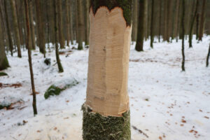 Erste Erfolgsergebnisse beim „Pilze impfen“ konnten in diesem Jahr bereits erzielt werden, unter anderem eben mit dem seltenen Buchenstachelbart. „Bisher haben wir nur liegendes Totholz geimpft“, erklärt Karasch. Der Buchen- und der Tannenstachelbart benötigen jedoch ganz besondere Totholzstrukturen. „Beide Arten besiedeln stehende Bäume, die geschwächt oder bereits am Absterben sind.“ Im Tanzboden gibt es zwar stehendes Totholz, jedoch nicht in ausreichender Menge oder in zu stark zersetztem und bereits von anderen Pilzen besiedeltem Zustand. „Deshalb hilft der Mensch etwas nach. Wir haben einige wenige Buchen und Tannen geringelt, sprich im unteren Bereich des Stamms rundherum einen zirka 30 Zentimeter breiten Streifen der Rinde entfernt“, berichtet Jakob Geiger, Leiter der Nationalparkdienststelle Neuschönau. „Dadurch sterben die Bäume langsam ab und können ab dem kommenden Jahr mit den beiden seltenen Pilzen geimpft werden.“ Der Tannenstachelbart konnte bereits im Tanzboden nachgewiesen werden, was die Erfolgsaussichten für diese Maßnahme nochmal verbessert.