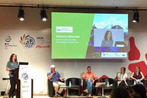 Im Rahmen des IUCN-Kongresses organisierte das Netzwerk Alpiner Schutzgebiete (alparc) zusammen mit der EUSALP-Aktionsgruppe 7 eine Sitzung. Bei einem generationsübergreifenden Dialog forderten Expertinnen und Experten aus den Bereichen Forschung, Forstwirtschaft und Umweltbildung mehr ökologische Vernetzung für den alpinen Natur- und Kulturraum. Während die so genannten „Senior Experts“ (Chef-Experten) ihre langjährigen Erfahrungen teilten, stellte Johanna Wimmer vom Nationalpark Berchtesgaden zusammen mit weiteren „Young Professionals“ ihre Erwartungen, Visionen und Hoffnungen für die Zukunft der Alpen vor. Ziel der 90-minütigen Sitzung war es, einen konstruktiven Dialog zwischen jungen Naturschützenden und der erfahrenen Naturschutzexpertenschaft zu fördern und Ansichten auszutauschen, wie Naturschutzfragen im Hinblick auf die aktuellen Herausforderungen wie Klimawandel und der Verlust der biologischen Vielfalt angegangen werden sollten.