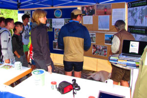 Am Infostand mit dabei sind auch EU-React Rangerinnen und Ranger. Um die Folgen des immer stärker zunehmenden Besucherandrangs und die damit einhergehenden Probleme der Nationalparkwacht zu kompensieren, hat die Europäische Union mit den REACT-EU Aufbauhilfen im Nationalpark fünf Rangerstellen für zwei Jahre geschaffen. Diese Mitarbeiter unterstützen das Stammpersonal der Nationalparkwacht größtenteils bei Streifgängen im Gelände und helfen bei der täglichen Arbeit.