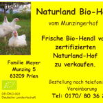 Am Freitag, 23. Juni ist es wieder möglich, Naturland Bio-Hendl vom Munzingerhof in Prien-Munzing (bei Atzing) nach frischer Schlachtung abzuholen.