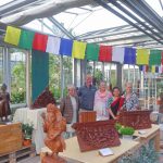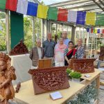 Im Rahmen der Reihe „Kunst im Gewächshaus“ war der Künstler Indra Prasad Shilpakar aus Nepal für ein paar Tage in Prien a. Chiemsee zu Gast. Der 2017 von der Nepal Academy of Fine Arts als bester Holzschnitzer nach traditioneller Schnitzkunst ausgezeichnete Künstler zeigt seine Kunstwerke in fünf bayerischen Gärtnereien. Eingeladen und organisiert hierzu hat die Familie Benkert aus dem fränkischen Waigolshausen, die seit fast 30 Jahren intensive Beziehungen nach Nepal pflegen und dort unter anderem einen Schulhausbau unterstützt haben. In Prien stellte Gärtnermeister Philipp Rother seine Gewächs-Räumlichkeiten zur Verfügung. Zwischen den Pflanzen und Blumen kamen die Kunstwerke mit den Motiven „Himmlische Wesen“, „Drachen“, „Musikanten und Gottheiten“ sowie mit den Themen „Fruchtbarkeit“ und „Weisheit“ bestens ins Bild. Die nächsten Ausstellungsorte sind vom Donnerstag, 7. Juli bis Samstag, 9. Juli die Gartenwelt Dauchenbeck in Fürth und vom 15. bis 17. Juli die Gärtnerei Benkert in Waigolshausen. Vor Prien waren noch Ausstellungen in der Premiumgärtnerei Scherdi in Hofstetten und im Kiefl Gartencenter in Gauting bei München.