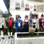Foto: Offizielle Übergabe der neugeschaffenen Funktionsabzeichen für das Bataillon der Bayerischen Gebirgsschützen im Inn-Chiemgau von links: Gau-Hauptmann Hans Rucker, Stellvertreter Günther Hochhäuser, Adjutant und Schriftführer Uwe Hecht, Marketenderin Brigitte Meier, Waffenwart Sepp Kirner und Standartenträger Adi Auer.