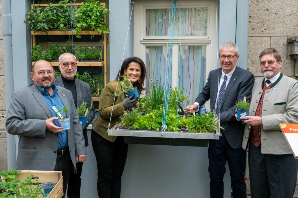 „Keep green – feel cool“ – das ist das Motto des neuen Klimawandelgartens am Landwirtschaftsministerium, den Staatsministerin Michaela Kaniber Mittwoch in München eröffnet hat. „Gärten, Parks und andere grüne Flächen in der Stadt sind wichtig für das Mikroklima vor Ort. Mit unserem neuen Schaugarten wollen wir Bürgerinnen und Bürger dabei unterstützen, ihre Wohnorte trotz Klimawandels lebenswert zu erhalten“, sagte die Ministerin bei der Eröffnung des Gartens. Der neue Klimawandelgarten soll Stadtbewohnerinnen und -bewohnern mit und ohne Garten oder Balkon zeigen, wie wichtig das Thema ist und mit welchen innovativen und praktischen Ideen man den Auswirkungen des Klimawandels in der Stadt begegnen kann. Denn Gärten, Parks und Begrünungen leisten einen wertvollen Betrag zum Ausgleich der Temperaturextreme und verbessern das Klima in Städten.