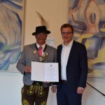 Nach zwei Jahren der Fertigstellung der Banner von den einzelnen Gaufesten, konnte am Freitag 10.06. endlich die Ausstellung der 100 Gaufeste im Inngau im Bürgersaal in Neubeuern eröffnet werden. Besonders begrüßte Gauvorstand Pankraz Perfler den Rosenheimer Landrat Otto Lederer, den Hausherrn des Bürgersaals und Bürgermeister von Neubeuern Christoph Schneider, alle anwesenden Bürgermeister, den Obmann unseres benachbarten Tiroler Unterinntaler Trachtenverbandes Markus Nachtschatten, den 3. stellvertretenden Vorstand vom Bayr. Trachtenverband Erich Tahedl, unseren Gauehrenvorstand Walter Weinzierl sowie die anwesenden Gauehrenmitglieder Anneliese Weinzierl, Richard Bonnetsmüller und Thomas Fischbacher. Auch alle anwesenden Vereinsvertreter und Gauausschussmitglieder konnte der Gauvorstand als Ehrengäste begrüßen. Pankraz Perfler ist stolz, dass sich der Inngau mit dieser Ausstellung gut präsentieren kann. Es wird gezeigt, dass die Vereine im Gau zusammenhalten und ein solches Fest organisieren und durchführen. Auch in den Grußworten vom Landrat Lederer und Bürgermeister Schneider konnte dieser Zusammenhalt in den Vereinen nur gelobt werden. Pankraz Perfler bedankte sich besonders bei Walter und Thomas Weinzierl sowie bei Hubert Weigl, die seit 2018 die Planung, Erstellung und Organisation dieser Ausstellung übernommen haben. Walter Weinzierl konnte in seinem Grußwort einige Daten und Fakten an die anwesenden Ehrengäste geben. Los ging die Planung für die Ausstellung im Jahr 2018, als Anlass hatte Sepp Lausch die Idee des 100. Gaufestes im Jahr 2020. Alle Vereine, die ein Gaufest veranstaltet haben, wurden gebeten, Bildmaterial und Dokumente vom jeweiligen Gaufest abzugeben. Alle Daten wurden digital erfasst und auf Bannern abgedruckt. Besonders Thomas Weinzierl hatte viel Arbeit, allein er leistete ca. 565 Stunden für die Bearbeitung der Bilder und Erstellung der Banner, hinzu kommen noch die unzähligen Stunden von Hubert Weigl und Walter Weinzierl. Leider konnte die Ausstellung im Jahr 2020 beim Gaufest in Ostermünchen aufgrund der Coronapandemie nicht stattfinden. Immer wieder wurden ein Termin und Ort für die Durchführung der Ausstellung gesucht, doch leider war dies in den letzten zwei Jahren nicht möglich. Heuer konnte während des Trachtenmarktes am 11./ 12. Juni in Neubeuern die Ausstellung stattfinden. Begleitend zu der Ausstellung erstellte Walter Weinzierl noch ein Buch über die 100 Gaufeste, wo zum Teil noch weitere Dokumente, Bilder und Anekdoten festgehalten sind. Unter musikalischer Begleitung konnten die anwesenden Ehrengäste die Ausstellung begutachten und den Abend bei einem Gespräch untereinander ausklingen lassen. Als Dank für die Unterstützung und Freundschaft bekamen Landrat Lederer, Bürgermeister Schneider, Obmann Nachtschatten und der 3. stellvertretende Vorstand des Bayerischen Trachtenverbandes Erich Tahedl ein Begleitbuch der Ausstellung mit persönlicher Widmung des Gauvorstandes.