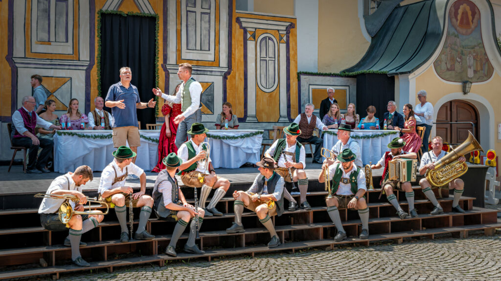 Die Mittagssonne brennt auf den historischen Marktplatz von Neubeuern, doch niemand denkt ans Aufgeben: Über hundert Mitwirkende – in Seide, Samt und Lederhosn – proben mit vollem Einsatz für ein ganz besonderes Theaterereignis: „Der Bayerische Jedermann“ kehrt zurück nach Neubeuern. Bereits zum sechsten Mal bringt die Theatergemeinschaft das preisgekrönte Mysterienspiel auf die Bühne – lebendig, bayerisch, mitreißend.