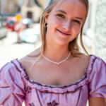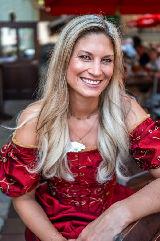 Kurze Verschnaufpause – großes Strahlen: In der Rolle der Buhlschaft bringt Susanne Schörghuber nicht nur Glanz auf die Bühne des Neubeurer Marktplatzes, sondern auch Charme und Tiefe ins Spiel. Hier zeigt sich die Hauptdarstellerin in einer seltenen ruhigen Minute – mitten im Trubel der Proben, aber mit spürbarer Vorfreude auf die Premiere des Bayerischen Jedermann.