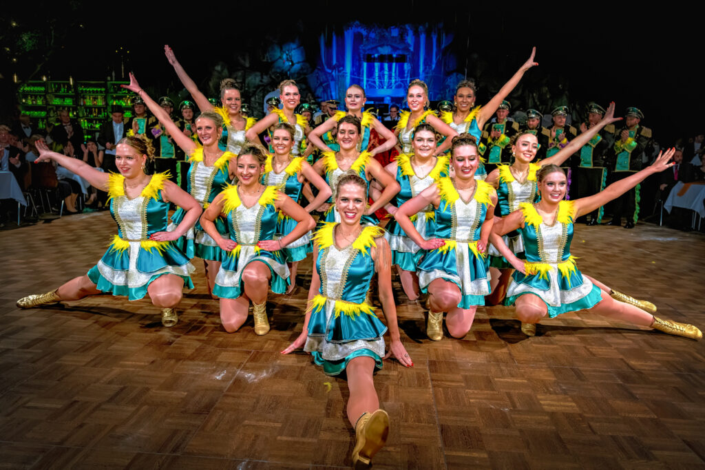 Gardemädchen in Formation: mit Energie, Präzision und Ausstrahlung – der Gardemarsch als Stimmungsmotor des Abends.