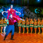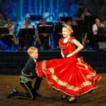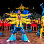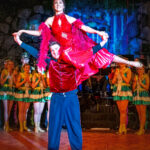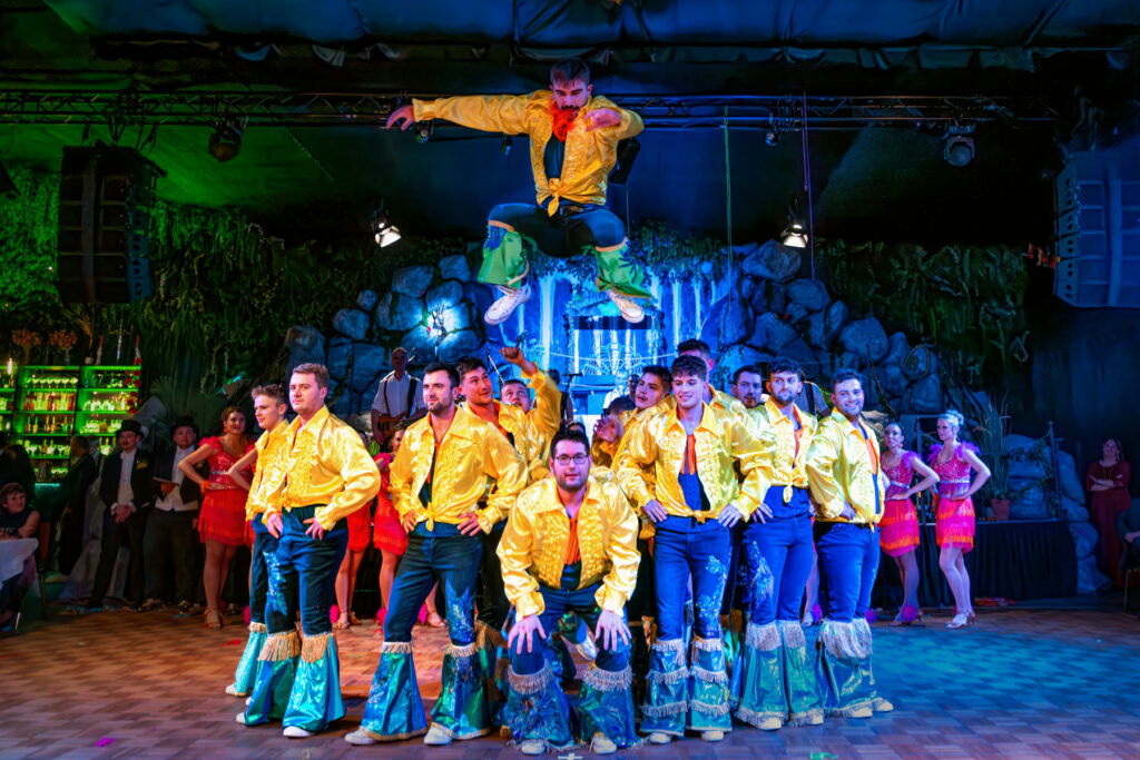 Mitten in der Show: spektakuläre Hebefigur vor dem applaudierenden Hofstaat – Fasching als Bühnenkunst.