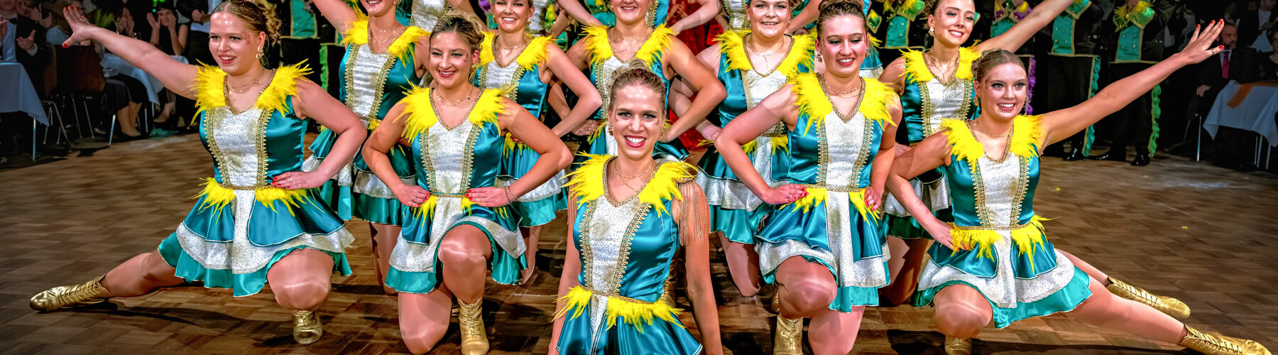 Gardemädchen in Formation: mit Energie, Präzision und Ausstrahlung – der Gardemarsch als Stimmungsmotor des Abends.