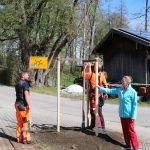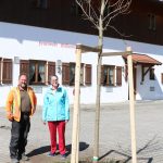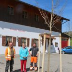 – Bürgermeisterin Marianne Steindlmüller und die Männer vom Bauhof pflanzen einen neuen Bergahorn vor dem Wildenwarter Feuerwehrhaus