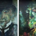 Zentrales Werk der neuen Ausstellung in der Galerie MarahART sind die Gemälde Faust +Mephisto der Münchener Künstlerin Berit Opelt. Hier in der Galerie sehen Sie die beiden Originalarbeiten auf Leinwand, die sie auf LKW-Planen im SkulpturenGarten des KunstKreis Bernau diesen Sommer bewundern können. Die seelenvolle Wiedergabe der beiden Charaktere die scheinbar unterschiedlich, sich in der Ergänzung gegenseitig bestätigen. Faust bedingt Mephisto und umgekehrt, gemeinsam zeigen sie die Abgründe menschlichen Strebens. „Beim Versuch Grenzen zu überschreiten um in unbekanntes Terrain vorzudringen, ist es notwendig Risiko- und Opferbereitschaft zugrunde zu legen. Wer Außergewöhnliches erreichen möchte muss auch zu außergewöhnlichen Mitteln greifen”, so die Galeristin.