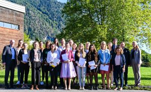 Die 17 neuen Lehrkräfte im Berchtesgadener Land gemeinsam mit Landrat Bernhard Kern (ganz links), Personalratsvorsitzendem Bernd Rüger (2. Reihe, 3. v. r.), Schulamtsleiter Helmut Mayer (2. Reihe, 2. v. r.) sowie stellvertretende Schulamtsleiterin Susanne Ehrichs (ganz links) nach der Vereidigung. Foto: LRA BGL