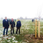 Die Auszubildenden lernten an diesem Tag unter fachlicher Anleitung das richtige Pflanzen der Obstbäume, den Einbau eines Schutzkorbes gegen Wühlmäuse und das Anbinden der jungen Bäume an die zuvor eingeschlagenen Holzpfähle. Vorher wurden die Pflanzlöcher per Hand ausgehoben, so dass bald keiner der rund 30 Helfer mehr die Kälte spürte. Nach dem Einwässern der Bäume demonstrierten die Experten an einem Baum den sogenannten Pflanzschnitt, den ersten Schnitt nach der Pflanzung. Jedes Jahr folgen darauf in den ersten 10 bis 15 Jahren der so genannte Erziehungsschnitt, der die Voraussetzung ist, dass die Bäume langfristig stabile und luftdurchlässige Kronen ausbilden. So können sie ein hohes Alter erreichen und viele Jahre Früchte bringen. Der Landschaftspflegeverband hatte dafür auf den Standort angepasste, teils auch alte lokale Obstsorten ausgesucht, wie die Apfelsorten „Bergener Weinling“ und „Waginger Kalvill“.