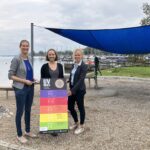 Übergabe UV-Indextafel Gemeinde Bernau (v.l.n.r. Bürgermeisterin Bernau Irene Biebl-Daiber, Katrin Posch Geschäftsstellenleitung Gesundheitsregionplus Landkreis Rosenheim, Carina Jung Arbeitsgemeinschaft Dermatologische Prävention).