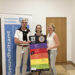 Übergabe UV-Indextafel Gesundheitsamt Rosenheim (v.l.n.r. Dr. Wolfgang Hierl Leitung Gesundheitsamt, Katrin Posch Geschäftsstellenleitung Gesundheitsregionplus Landkreis Rosenheim, Carina Jung Arbeitsgemeinschaft Dermatologische Prävention).