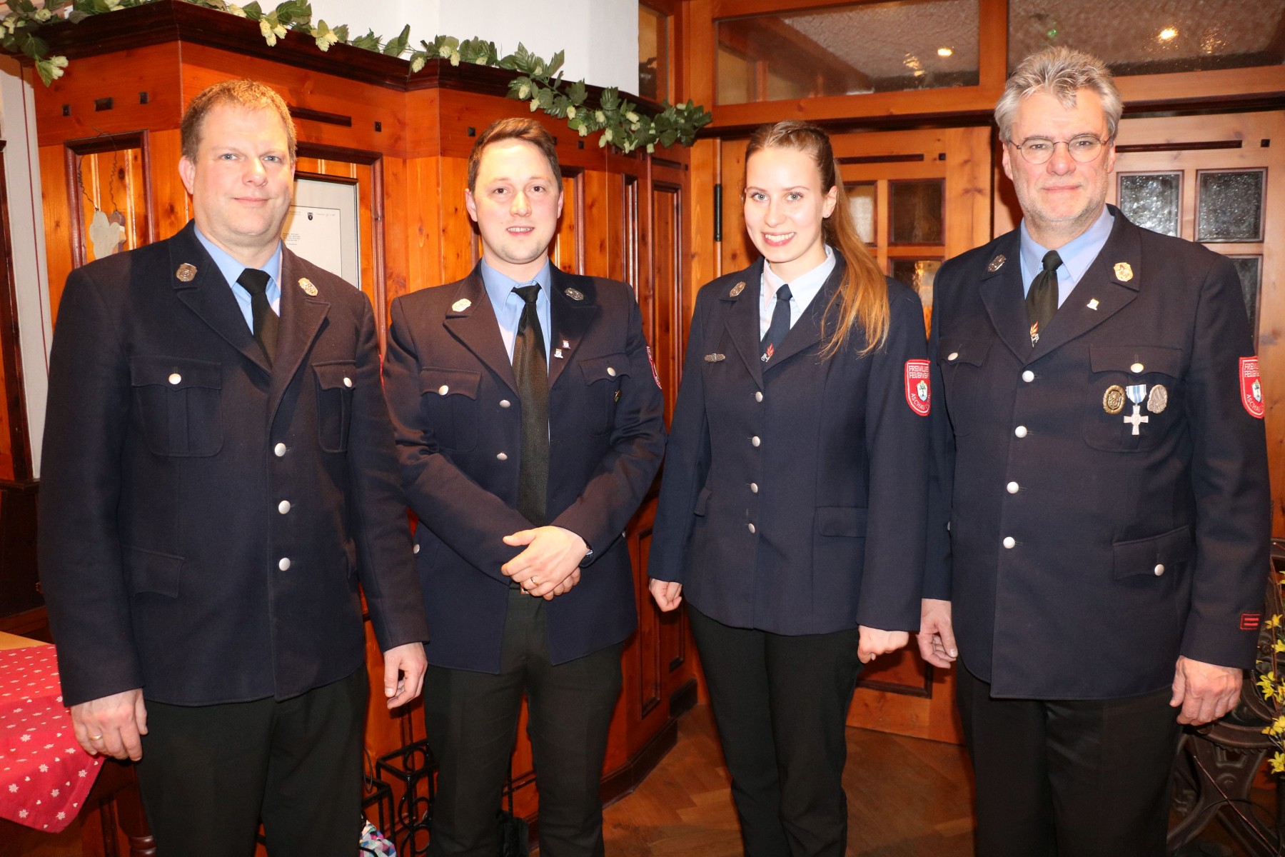 Die Vorstandschaft der Aschauer Feuerwehr: erster Vorsitzender Werner Grill – Schriftführer Peter Graf – Kassenfrau Katharina Hobelsberger – zweiter Vorsitzender Christian Deml