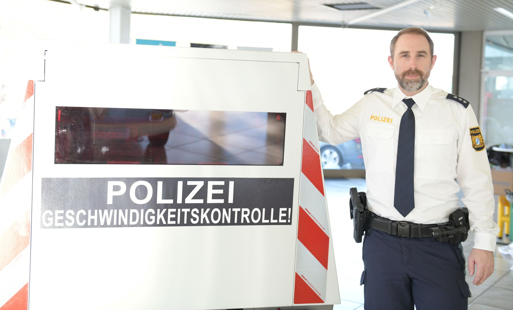 Polizeihauptkommissar Peter Nieland, Leiter zentrale Verkehrsaufgaben bei der Verkehrspolizeiinspektion Weilheim, koordiniert den Einsatz des Enforcement Trailers.