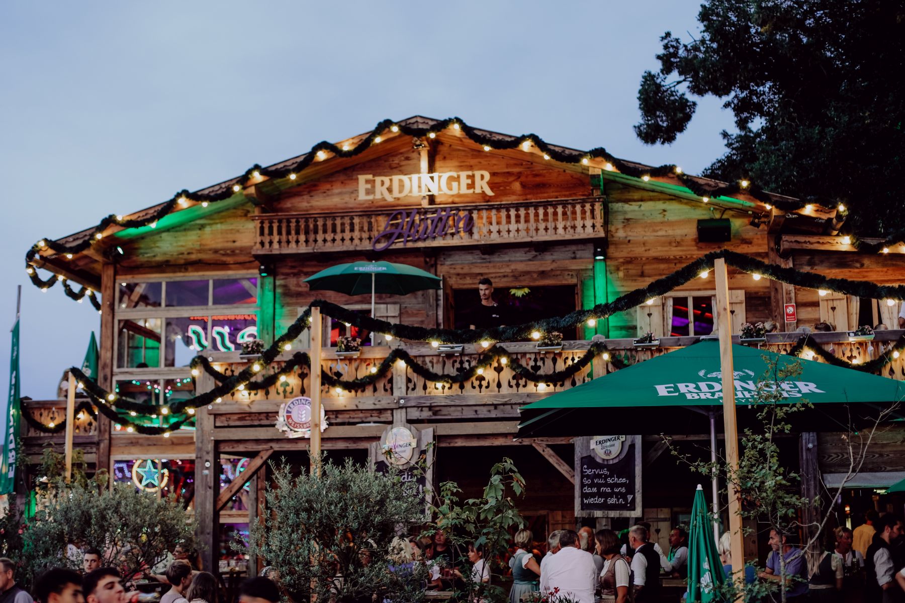 Die ersten zwei Jahre der ERDINGER Hütt’n auf dem Herbstfest in Erding waren ein voller Erfolg. Täglich kamen hier die Gäste in den Genuss von bayerischen Schmankerln, Live-Musik und der urigen Atmosphäre. In diesem Jahr werden neue Festwirte für die schon jetzt legendäre ERDINGER Hütt’n-Stimmung sorgen. [Bildrechte: Martin Brosig / ERDINGER Weißbräu]