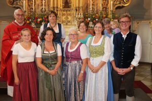 Der neue Frasdorfer Pfarrgemeinderat beim Festgottesdienst zum Patrozinium der Pfarrkirche Sankt Margaretha: Erste Reihe von links: Johanna Reichhold – Barbara Weber – Barbara Auer – Petronilla Keil – Peter Buchauer Zweite Reihe von links Pfarrer Hermann Overmeyer – Pia Maria Moser – Christine Suhr – Evi Scheck ( nicht mit im Bild Manuela Keil).