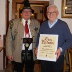 Zum Schluss folgten wie immer die Ehrungen langjähriger aktiver und passiver Mitglieder durch den Hauptmann. Jörg Ott erhielt die „Ehrenmedaille der Kompanie in Bronze,“ Markus Rappel, Helmut Eberl, Christian Späth und Wolfgang Fischer erhielten die „Ehrenmedaille der Kompanie in Silber.“ Die „Ehrenmedaille der Kompanie in Gold“ für 50 Jahre aktive/passive Mitgliedschaft erhielten Erika Aigner, Michael Anner jun. und Stefan Anner.
